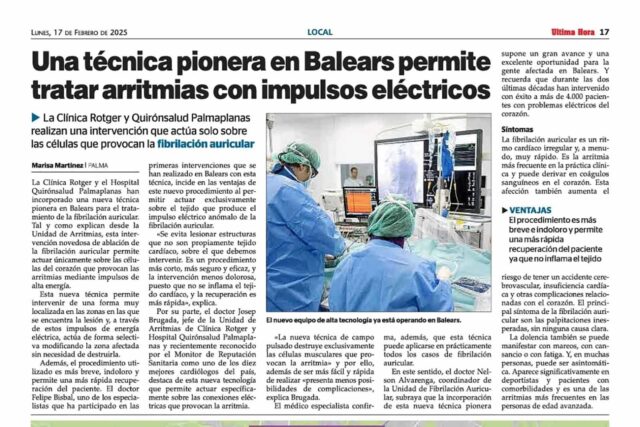 Una técnica pionera en Baleares permite tratar arritmias con impulsos eléctricos