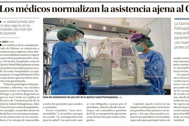 Ver noticiaAsistencia ajena: los médicos de la sanidad privada de Baleares se empiezan a preparar para regresar a una relativa normalidad cuando se supere lo peor de la pandemia del Covid-19.